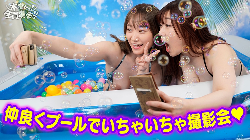 場面は変わり、二人が水着に着替え撮影会が開始。胸の大きさに対し水着が小さく凄くエロイ。